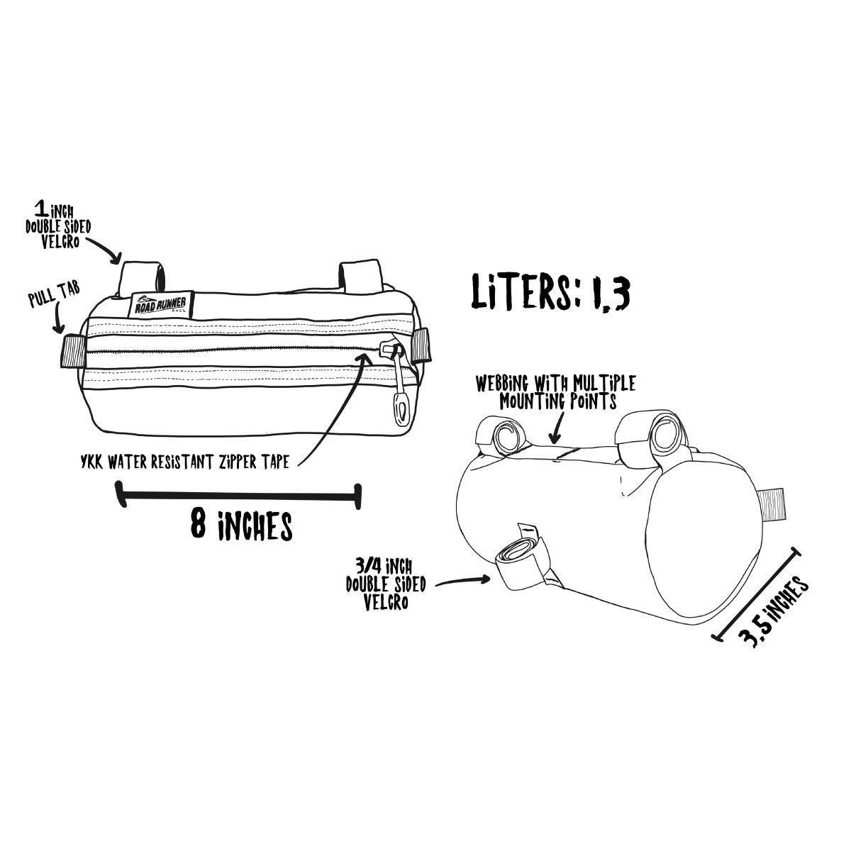 Create an accountNever find yourself unprepared with this simple handlebar bag adds that extra bit of storage for daily rides. Store your tools, keys, wallet, phone, snacks & packable clothing layers. With an internal volume of 1.3 L, this beast of burden will carry all the basics you need for a long day in the saddle. So take a bite and jump right in!