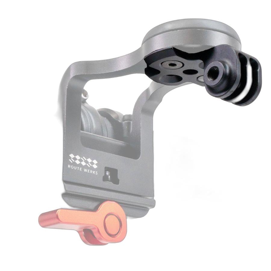 The Route Werks Action Mount is a robust accessory designed for cyclists who need a reliable way to mount action cameras on their bikes. Made from extruded, machined, and anodized aluminum, this mount ensures durability and a sleek finish. With stainless steel hardware and a compact design, it integrates seamlessly with your biking setup.