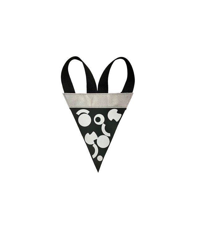 Serious connoisseurs of pizza know that "char" is a sign of quality and craftsmanship. For you, we have the black-and-white Burnt Slice, with an ultra-reflective black finish. Burnt Slice is made from the same waterproof, high performance, non-fraying materials as the standard Safety Pizza, and is usable in temperatures down to -55°F (may you never ever ever be that cold) With a sophisticated aesthetic and classic feel, this timeless piece is sure to elevate your style and bring you distinguished elegance.